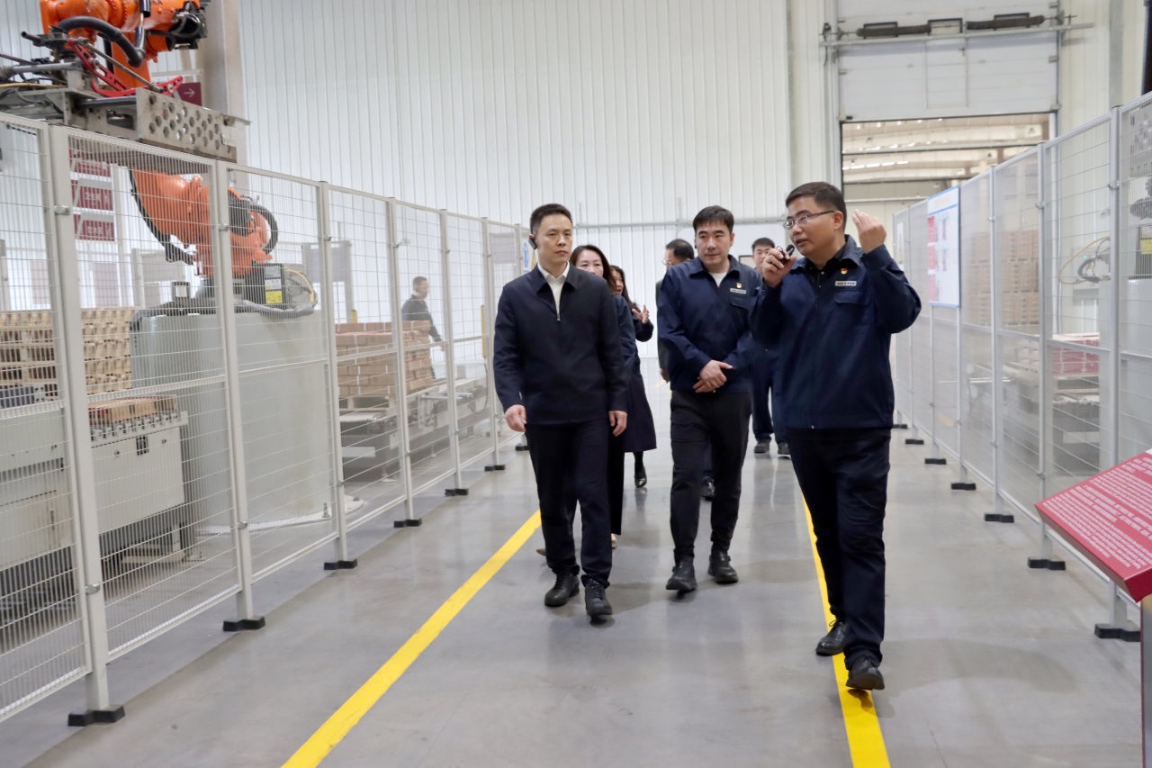 雷振一行來(lái)到金橋科技公司,先后參觀了焊絲、焊條車間的智能生產(chǎn)一體線及科技公司展廳,對(duì)金橋焊材集團(tuán)的先進(jìn)生產(chǎn)工藝、智能化制造水平以及在行業(yè)內(nèi)的創(chuàng)新成果表示高度贊賞。