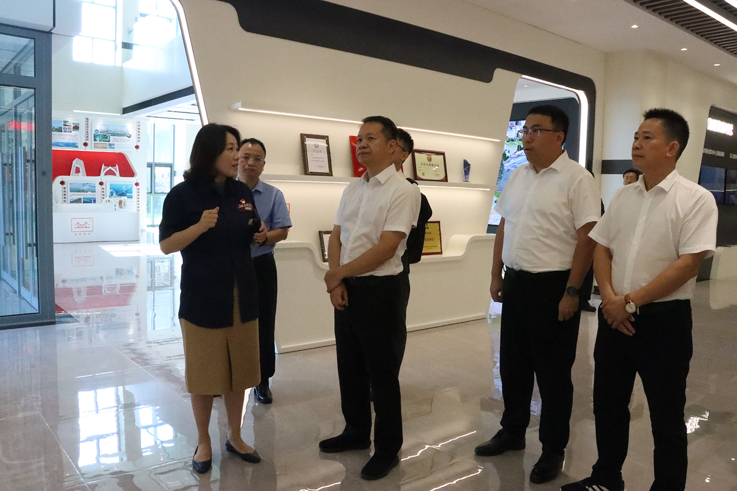 7月17日上午,防城港市副市長禤東一行走進金橋科技公司參觀調研。集團黨委副書記李紅梅接待。